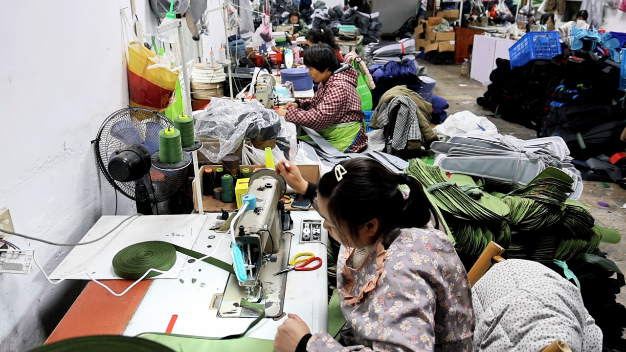 走进胡姐户外休闲用品加工点,缝纫机“嗒嗒嗒”作响。这个开了十七八年的来料加工点,是名副其实的“巾帼共富工坊”。20多名女工正埋头赶工,她们大多是周边30至55岁的家庭主妇,用一双双巧手撑起了家门口的“致富伞”。